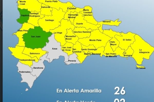 Domingo, 12 Abril 2026 El COE mantiene 25 provincias y el Distrito Nacional en alerta amarilla y 02 en verde, debido a que el informe del INDOMET e INDRHI,establecen que continuamos bajo condiciones meteorológicas e hidrológicas, favorables para que sigan las precipitaciones y continueaumentando la humedad de los suelos en las provincias bajo alerta. Además,…